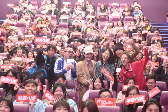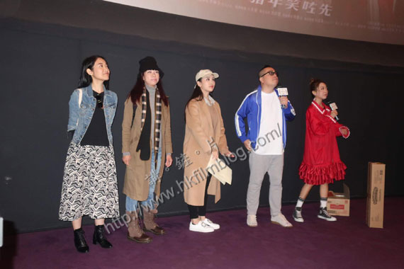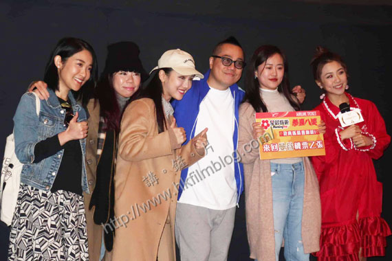 《恭喜八婆》在剛過去的周末共有兩場優先場,其中一場為贊助商私人包場,而另一場位於Cinema City朗豪坊則以丁可欣的名義招徠。而在電影放映完畢後,導演兼編劇彭浩翔率領一眾演員出席,當中除了丁可欣外,還包括了在座觀看的林兆霞、陳逸寧與陳靜。