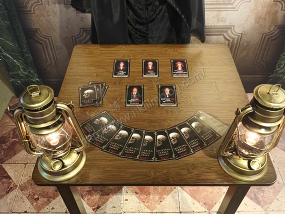而在檯面上,則看到以電影《威尼斯謀殺案》為主題的搭羅牌,而不同的牌則出現片中的不同主角及其身份。不過大家不要以為可以窺看其他塔羅牌會有甚麼,因為各張牌已被膠水緊貼在檯上,不能移走。不過觀乎整個電影宣傳品的規模,可以看到迪士尼發行真的此這部電影甚有信心,在宣傳上亦十分落本。