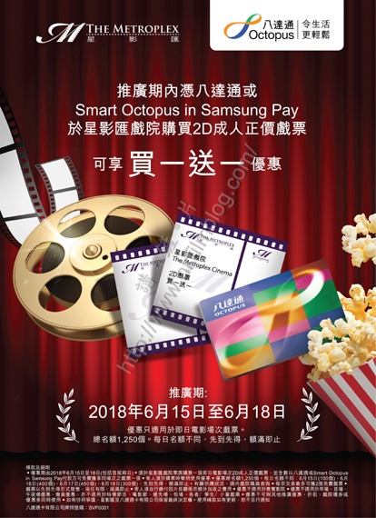上圖所見,便是星影匯提供的最新優惠。觀眾於六月十五日至六月十八日期間,於星影匯戲院票房以八達通購買即日2D成人戲票,便可以享有買一送一優惠。然而,優先場戲票與早場及午夜場戲票並不適用,而每次購票最多可享兩張免費戲票優惠。