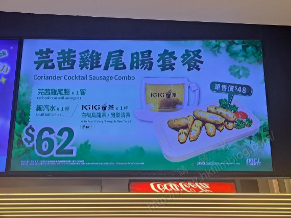 近年來不同的戲院都嘗試開托戲院小食部客源,當中部分戲院不約而同推出跟香港主題相關的套餐。當影藝戲院推出香腸拼盤餐時,MCL院線亦於近期推出了套餐加購的芫茜雞尾腸,而如今亦可以獨立購買或作套餐購買。