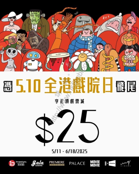 上圖所見,便是百老匯院線在其官方Facebook專頁的圖片,可以看到該戲院推出全港戲院日的票尾優惠。觀眾憑著五月十日全港戲院日的百老匯院線戲票票尾,於百老匯院線旗下戲院票房購買五月十一日至六月八日的場次正價立票,便可以享二十五元優惠,而每次交易更可購買八張戲票。當然,票尾在享用這個優惠時,也會被戲院收回。
