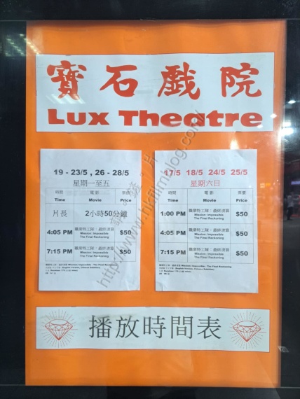 上圖所見,便是位於紅磡寶其利街的寶石戲院,該戲院即日放映《職業特工隊:最終清算》。