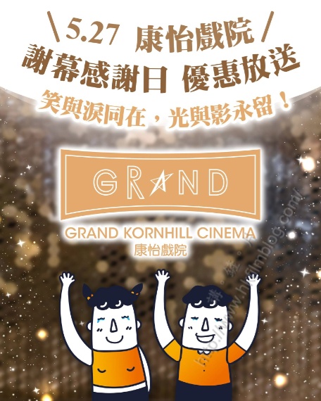 位於港鐵太古站康怡廣場南翼四樓由MCL營運的Grand Kornhill Cinema,因為租約期滿的關係,將於本月廿八日起結業。而MCL院線方面亦選擇歡迎這家戲院,並且於五月二十七日最後營業日推出謝幕感謝日,並且提供優惠。