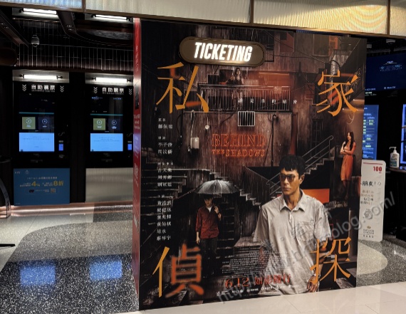 上圖所見,便是「講。鏟。片」情報人員日前於尖沙咀iSquare英皇戲院所攝,可以看到該戲院在七樓票房位置的其中一道牆身張貼了電影《私家偵探》的大型宣傳。電影宣傳品採用了初版海報的款式,當中男主角古天樂佔了主要位置,而其餘演員如周秀娜與劉冠廷則在錯縱複雜的樓梯裡,而下方寫上「6.12如影隨行」確定映期。