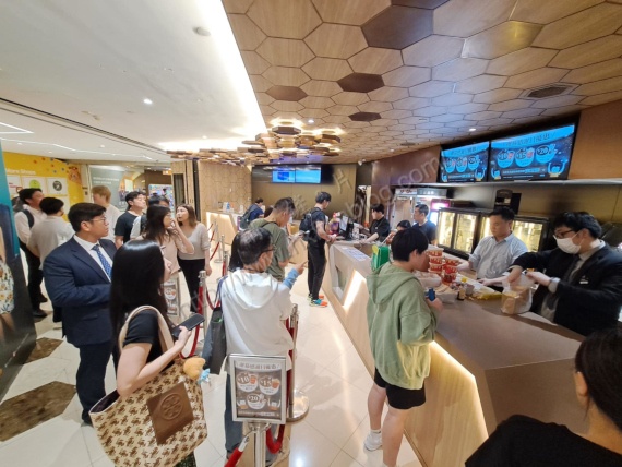細心來看,其實那條人龍不是前往戲院的票房購票,而是排到小食部,而小食部職員亦準備了不同款式的小食,從燒賣、魚蛋到水餃叮餃也有。
