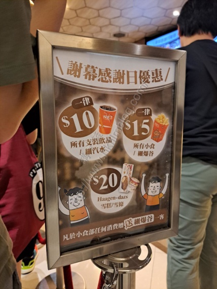主要的原因,就是康怡戲院在當天推出了謝幕感謝日優惠,當中所有支裝飲品與細汽水均為十元一客,而所有小食與細爆谷也只是十五元一客,至於雪糕與雪條則為二十元一客,故此吸引了不少觀眾前來購買。