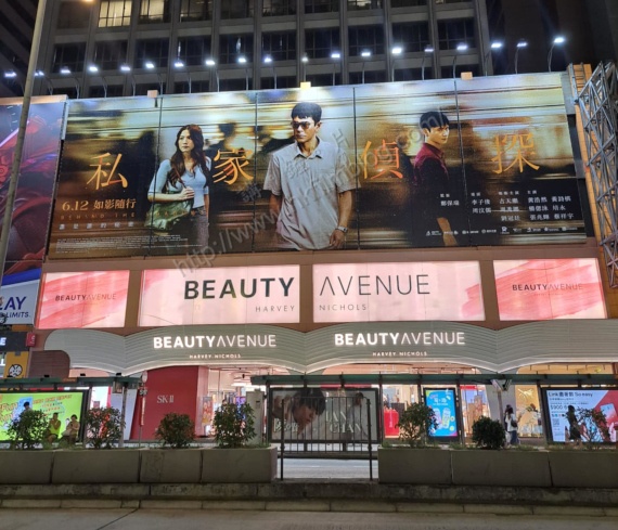 上圖所見,便是「講。鏟。片」情報人員日前於旺角彌敦道招商永隆銀行大廈的外牆所攝,可以看到該位置的大型宣傳廣告位置,已披上了電影《私家偵探》的宣傳,電影以一眾人影作為背景,而前方則看到三位主角,當中飾演私家偵探的古天樂在中央的位置,而左、右兩側分別為周秀娜與劉冠廷,而左下角則寫上「6.12如影隨行」來提示觀眾映期。