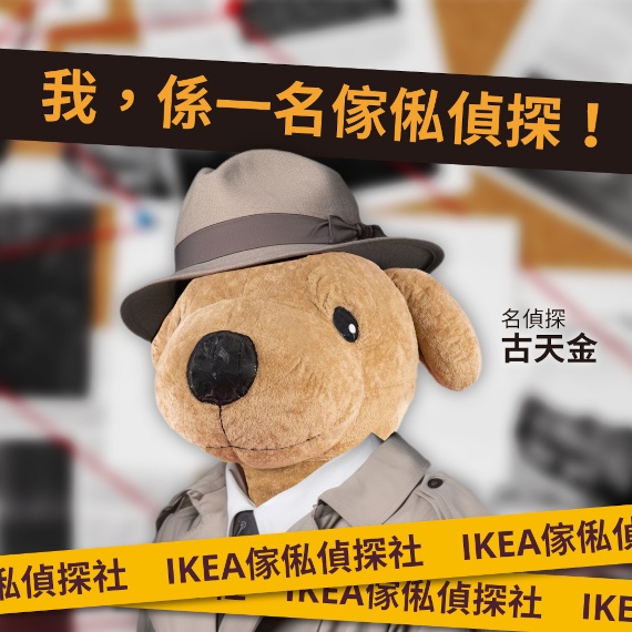 上圖所見,便是來自宜家傢俬的Facebook專頁的文章,當中以名偵探「古天金」為為,聲稱自己是傢俬偵探,並有膠帶寫上「IKEA傢俬偵探社」。