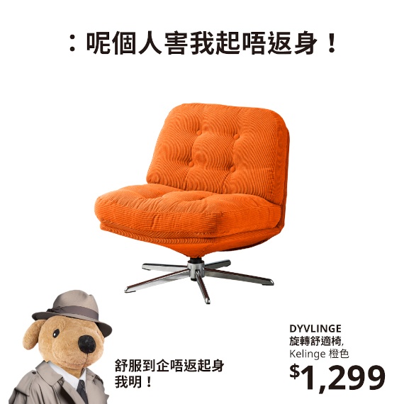 最後,就是被人害到不能起身時,則介紹一張舒服到不想起身的座椅。