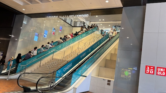 上圖所見,便是「講。鏟。片」讀者於日前在鑽石山荷里活廣場拍攝的相片,可以看到在商場毗鄰巴士總站連接地下與一樓的扶手電梯位置,已經披上了影藝戲院的廣告。