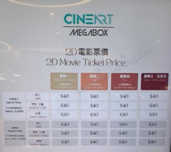 再來看看票價,成人基本票價為五十元,中午前的特惠場次票價與星期一票價同樣為四十元,看起來這個優惠價位相當相宜。