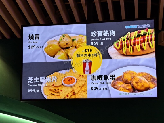 其他小食方面,包括了二十九元八粒的燒賣、四十九元一客的珍寶熱狗、四十九元一客的芝士粟米片及二十九元十粒咖喱魚蛋,全部均可以十五元加配中汽水一杯。