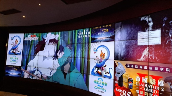 上圖所見,便是「講。鏟。片」情報人員於昨天下午時分在奧海城二期The Sky戲院大堂所攝。可以看到戲院的大型屏幕雖然仍然運作。不過兩、右兩側的屏幕顯示的電子海報卻出現順時針轉了九十度方向問題,明明打直的海報顯示猶如失誤。