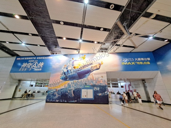 上圖所見,便是「講。鏟。片」情報人員日前於港鐵連接香港站與中環站的站內行人通道所攝,可是看到兩條通道的入口,成為了電影《神奇4俠:英雄第一步》的宣傳專區,T字型的宣傳位中央以四位人物為主體,兩側則寫上了片名與開畫日期。
