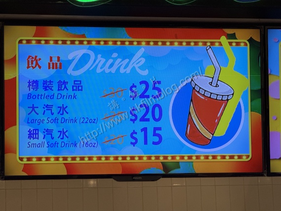 而飲品方面,樽裝飲品承惠30元一支、大汽水為25元,而細汽水為15元,同時各款飲品目前提供五元優惠。