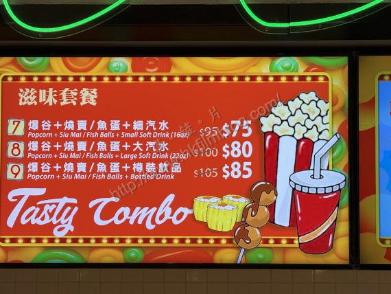 至於滋味套餐共有三款,屬於爆谷配上燒賣或魚蛋,再配上不同飲品,售價由95元至105元不等,現各款提供20元優惠。