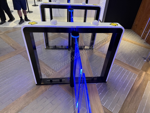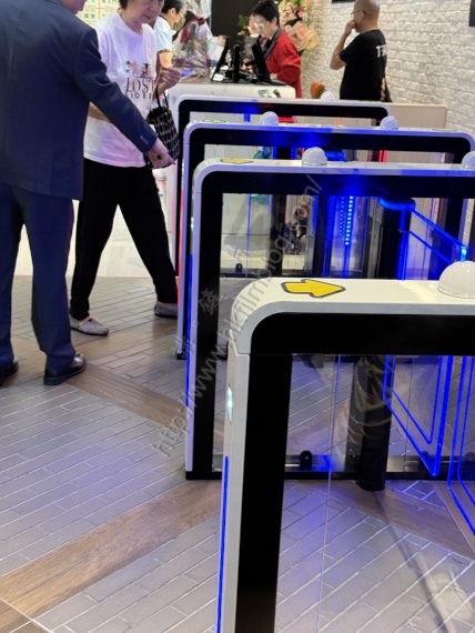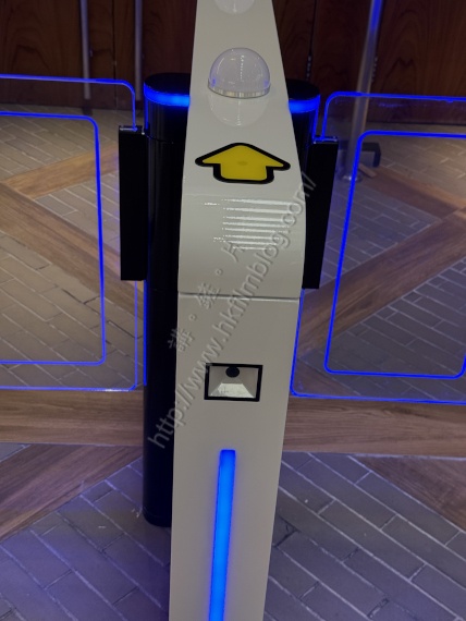 而閘機前方設有二維碼掃描器,而黃色箭咀前則冈燈號指示。觀眾需要將戲票在前方二維碼掃描器掃描,閘機就會自動打開。