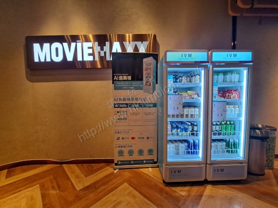 上圖所見,便是「講。鏟。片」情報人員日前於太古城中心MOViE MOViE Cityplaza戲院所攝,可以看到就在進場後上層大堂近MovieMaxx的入場位置,擺放了兩部AI售賣機,同時在左方亦有一個「易拉架」,介紹如何使用這部AI售賣機。而自助售賣機除了擺放了飲品外,還有小食。