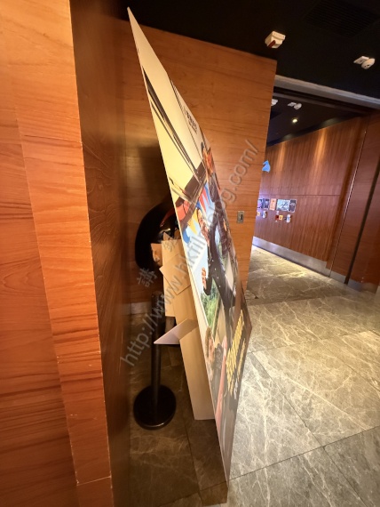 上圖所見,便是「講。鏟。片」情報人員於上月在奧海城二期The Sky戲院所攝,可以看到該戲院近小食部的一角,擺放了環球發行的電影《殺神Nobody 2》的宣傳紙板。不過觀乎一般電影宣傳品下方會貼地,這塊電影宣傳左下角卻是升起來,到底何以這樣不尋常?