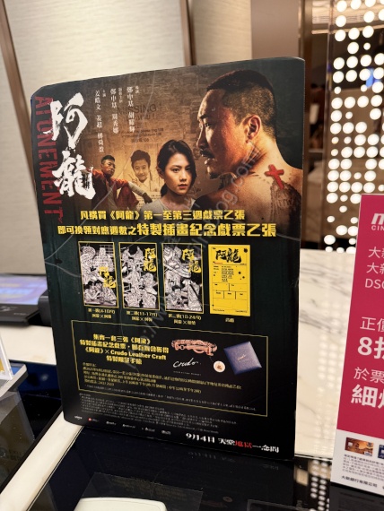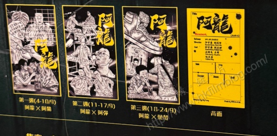 寰宇發行、鄭中基與胡耀輝合導,鄭中基、周秀娜、姜皓文、姜超與傅舜盈主演的《阿龍》已於九月四日在港上映。而上圖所見,則是「講。鏟。片」情報人員較早前於九龍塘Festival Grand Cinema戲院票房所攝,可以看到該戲院票房張貼了告票。觀眾購買電影《阿龍》於首三週的電影戲票,就可以換領對應上映週數的特製插畫紀念戲票一張。