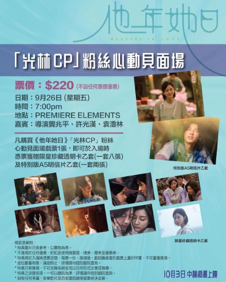 安樂發行、張艾嘉監製、龔兆平執導,許光漢與袁澧林主演的《他年她日》將於本月第三十屆釜山國際電影節作世界首映,並且於十月三日中秋檔期在港上映。而安樂發行特別安排一場「光林CP」粉絲心動見面場,該場次安排於九月二十六日星期五晚上七時正假九龍站Premiere Elements舉行,屆時導演龔兆平將連同演員許光漢與袁澧林出席。