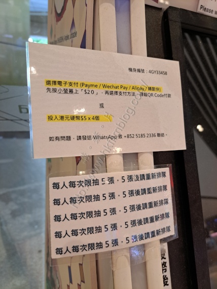 也許這個相紙機太受歡迎的關係,故此也張貼了通告,提醒觀眾每人每次限抽五張,五張後請重新排隊。未知是否這個提示太重要的關係,故此在同一張通告重覆五次。