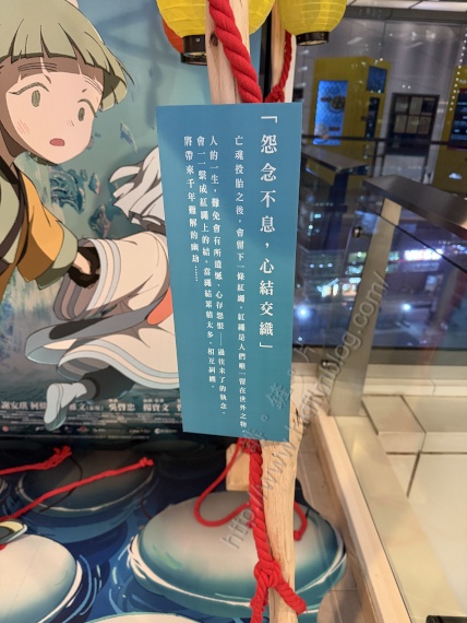 而右邊的柱同樣亦對於紅繩上的結有所解釋。倘若大家近期經過B+ cinema apm,也可以留意這個《世外》電影宣傳品。