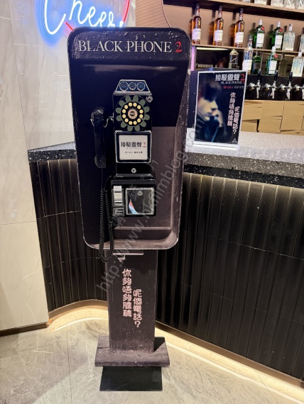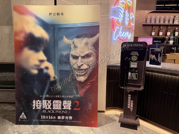 上圖所見,便是「講。鏟。片」情報人員日前於銅鑼灣時代廣場英皇戲院所攝,可以看到該戲院在小食部與一、二院入場位置之間有電影《接駁靈聲2》的電影宣傳品。當中左方為電影宣傳紙板,而右方則是一個電話亭宣傳。電話亭款式則K11 Art House相若,只是沒有一個上蓋。