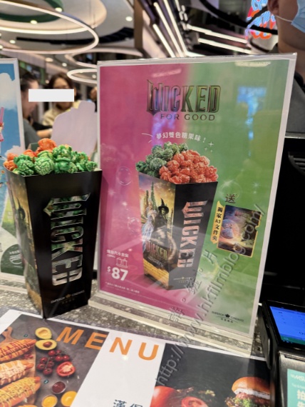 然而,為了配合電影的上映,除了爆谷盒印上了電影《魔法壞女巫:第二章》的宣上,爆谷亦以粉紅色與綠色雙色提供,屬「夢幻變成糖果味」。當中粉紅色的爆谷或會見過,但是綠色的爆谷則較為罕見,未知大家下回光顧英皇戲院時,又會否嘗試這款爆谷呢?