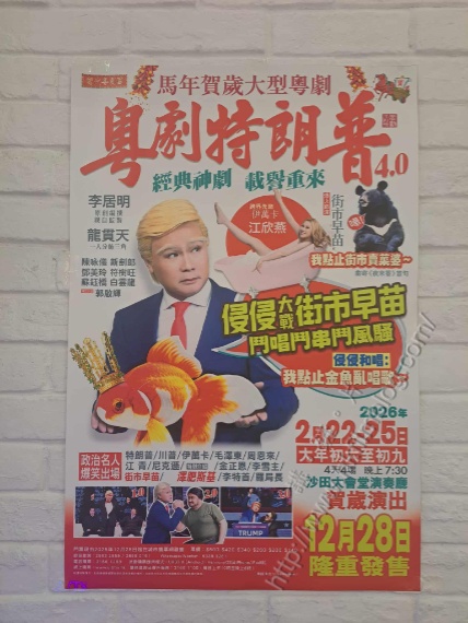 上圖所見,便是《粵劇特朗普》4.0的宣傳,當中看到是次為「馬年賀歲大型粵劇」,將於明年二月二十二日至二十五日,亦即是馬年的大年初六至初九,連續四晚每晚七時半假沙田大會堂演奏廳演出,而且門票已開始發售。