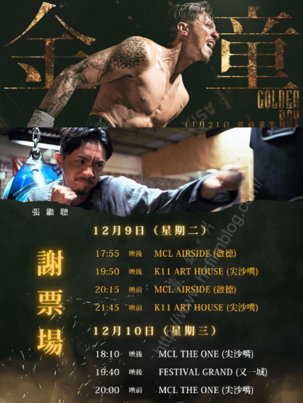 《金童》以張繼聰飾演拳手為主題,在他為此片無論是幕前、幕後以至宣傳上均傾盡全力。有意觀賞謝票場的觀眾,敬請從速購票好了。