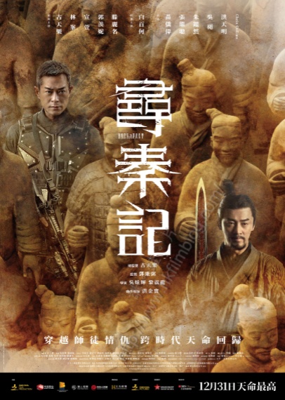 上圖所見,便是電影《尋秦記》的新版海報,海報看到兩位男主角古天樂與林峯融入在一眾秦代兵馬俑。海報下方寫上「12月31天命最高」,確定電影於今年十二月三十一日在港上映。而海報看到其他演員陣容包括了白百何、苗僑偉、張繼聰、朱鑑然、吳樾、洪天明與Chris Collins。海報下方寫上「穿越師徒情仇,跨時代天命回歸」的點題字眼。當中古天樂以現代的軍事造型出現,林峯則以秦朝服飾出現。