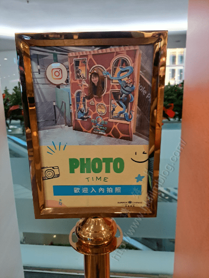 細看旁邊皂指示,可以看到中間的窗口的部分其實可以打開,而觀眾亦可以進入內部來合照一下,同時圖片亦提供了其中一個示範圖片。未知道大家近期倘若一家大細來到銅鑼灣時代廣場的英皇戲院時,又會否嘗試來一下跟這個宣傳品來合照呢?