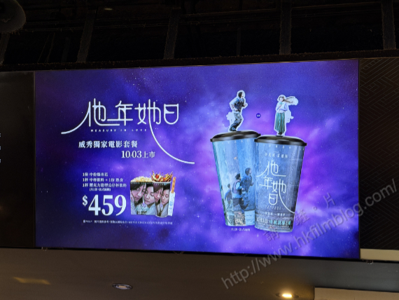 上圖所見,便是「講。鏟。片」的台灣讀者在台灣信義區MUVIE Cinem的小食部所攝,可以看到該戲院在冬至之時仍在推出《他年她日》套餐,套餐包括中爆谷一份、中杯飲品加熱食一份,還有電影主題飲品杯一杯,套餐售價承惠459元新台幣。