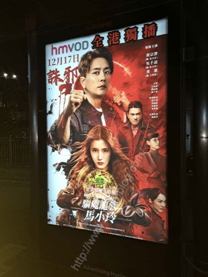 上圖所見,便是「講。鏟。片」情報人員在其中一個巴士站所攝,可以看到電影《驅魔龍族馬小玲》的宣傳。當中海報以左白右紅的設計,上方以男主角黃宗澤佔最大的位置,而下方則為吳千語,而右方則出現呂良偉、蔡潔等。左上角還寫上「12月17日誅邪」的字眼。