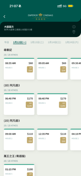 先來看看英皇戲院的手機應用程式,已再沒有顯示馬鞍山新港城英皇戲院的場次。