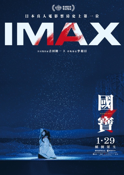 安樂發行、李相日執導,吉澤亮、橫濱流星、渡邊謙及高畑充希主演,以歌舞伎為主題的日本電影《國寶》自十一月十三日在香港上映以來,無論是市場表現或是口碑上均相當理想。而近期《國寶》推出IMAX版本,香港方面亦將會上映該版本。
