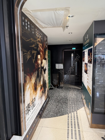 然而,在通往洗手間的通道,仍然可以看到英皇戲院的小食售價清單與票價,而左方以林峯飾演秦王的《尋秦記》宣傳仍然健在。