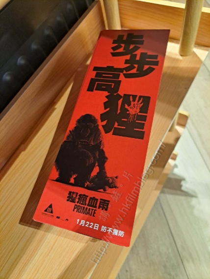 上圖所見,便是洲立發行將於一月二十二日上映的派拉蒙電影《猩瘋血雨》所製作的揮春。揮春以「步步高猩」為為,跟「步步高陞」作同音字。不過這部電影的猩猩疑患上症狗症而出現躁狂癥狀,並且襲擊人類,而飼養的家庭就要想盡方法為自己保命。