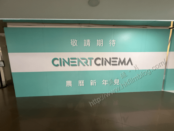 當中左、右的圍板同樣寫上影藝戲院英文CineArt Cinema的字樣,並且寫上「敬請前待,農曆新年見」的字眼,確定電影將於農曆新年前開幕。