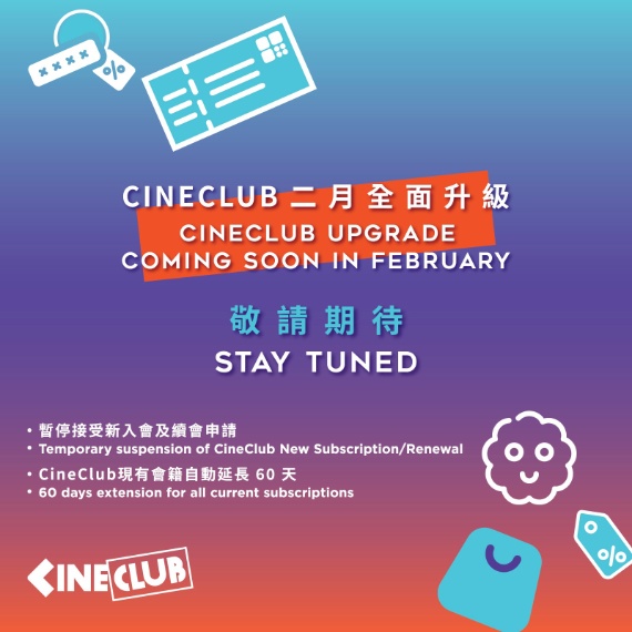 據香港國際電影節協會的資料顯示,電影節的CineClub將會進行系統升級工程,而新的會籍預計於今年二月升級。而為確保會籍系統的升級過程順利,故此在二月推出新系統時,暫時接受新入會及續會申請。而現在的CineClub會籍則會免費自動延長六十天,會員可繼續使用CineClub電子會員咭享有優惠。