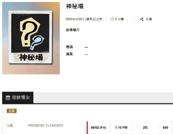 上圖所見,便是來自百老匯院線官方網站的截圖,可以攪到新一場優先場安排於二月六日星期五晚上七時十分假九龍站Premiere Elements戲院二院舉行,而目前只餘下前排少數座位發售。未知道大家又能否慼其圖像,猜到放映的神秘場是哪一部電影?
