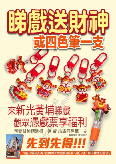 上圖所見,便是新光黃埔影藝城提供的最新優惠。觀眾即日起來新光黃埔影藝城觀賞電影的話,便可以獲得可愛財神鎖匙扣一個或小馬四色筆一支。當然,這個優惠也是新光黃埔所篾而且數量有限,先到先得。