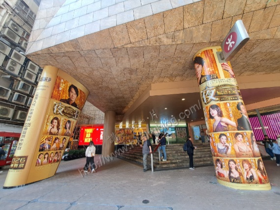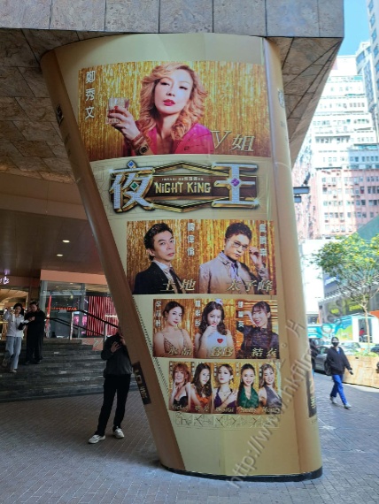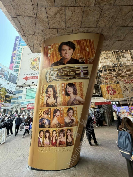 而左方柱位面向油麻地方向,則有《夜王》的角色照片,並且以鄭秀文的V姐為首。