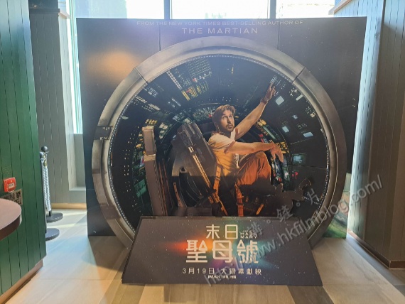 上圖所見,便是「講。鏟。片」情報人員於日前在尖沙咀iSquare英皇戲院八檈大堂所攝,可以看到該戲院在一、二院入口的右方位置,擺放了Sony Pictures發行將於三月十九日上映的《末日聖母號》大型立體電影宣傳品。