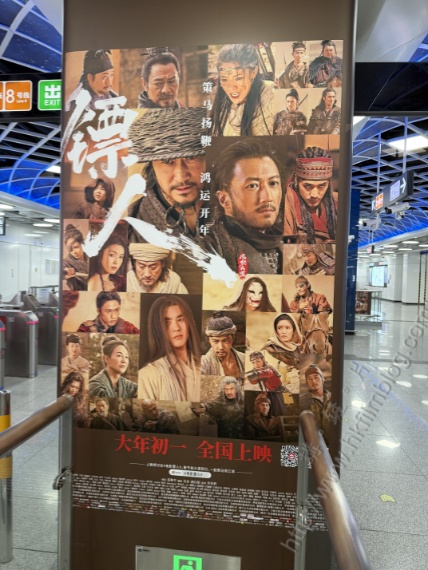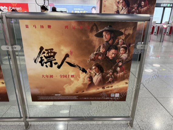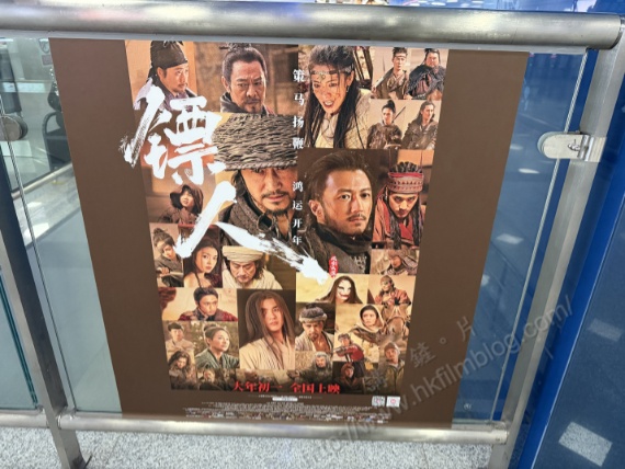 而另一款貼在杆欄玻璃的《鏢人:風起大漠》的宣傳,則以不同的方型看到片中的不同角色。