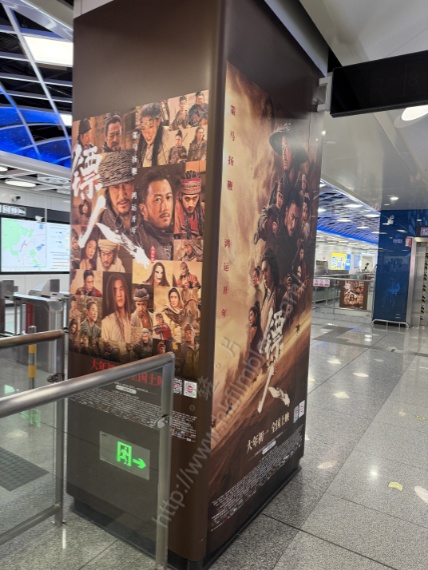 而在車站的柱身,亦披上了電影的宣傳。