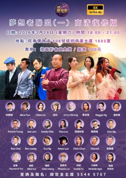 上圖所見,便是提電影出品、胡世全執導的《夢想者聯盟》,電影以七位人物的經歷改編而成,並且於去年十月在銅鑼灣CineArt JP影藝戲院舉行首映,也繼而在鑽石山荷里活廣場CineArt Hollywood、九龍灣CineArt MegaBox及青衣城影藝戲院各放映了一場。