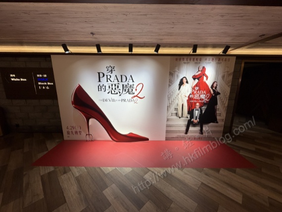 迪士尼發行的《穿Prada的惡麽2》將於四月二十九日在港上映。而上圖所見,則是「講。鏟。片」情報人員日前於尖東站K11 Art House所攝,可以看到在入場的通道的一角,已披上了該片的宣傳。而這個宣傳品明顯較一般戲院為大。當中右方看到常見的宣傳紙板,而左方白色的背景除了寫上片名與映期外,更放了一隻高跟鞋,而且也是立體設計。