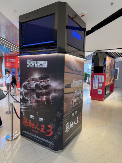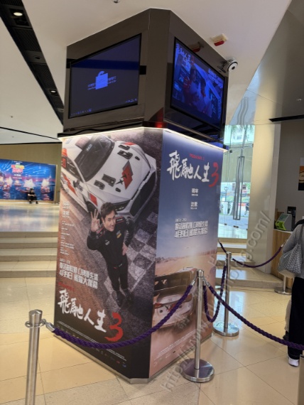 上圖所見,便是「講。鏟。片」情報人員日前於港鐵九龍灣德福廣場MCL德福戲院所攝,可以看到該戲院介乎售票處與入場位置的其中一條柱位,基本上成為不少電影的宣傳位置而是次看到的,為安樂發行、韓寒執導,沈騰、尹正、張本煜、黃景瑜與魏翔等主演,將於四月九日上映賽車題材電影的《飛馳人生3》宣傳,而且有著兩款不同款式在其中兩面。